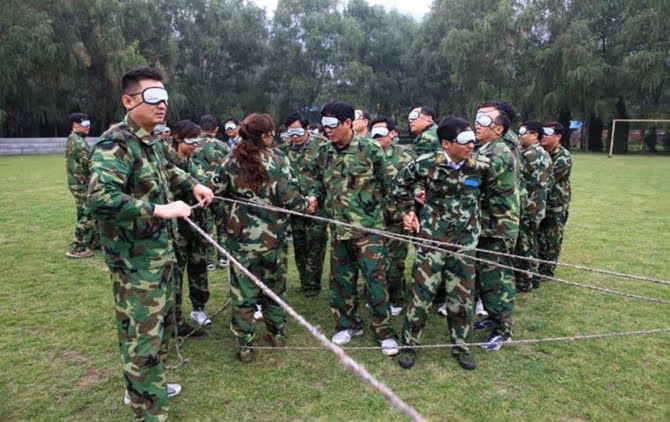 3、將隊伍分成3個小組,隊員戴上眼罩后,布置項目第一階段任務(三個小組分別做出正三角形、正方形、圓形,時間為15分鐘);