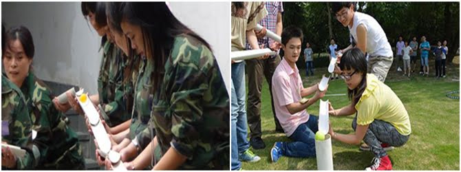 項目目標: 各小組在人數相等的情況下沿同一方向在相鄰人員間進行拋球傳遞,直至起始球傳遞一圈。以最快完成的組為獲勝組。(可分輪次,計各次時間總和評定優勝組)
